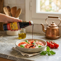 El vinagre balsámico de Módena Borges es dulce, delicado y penetrante, por lo que es fantástico para marinar pescados, carnes y verduras, así como para aliñar ensaladas.