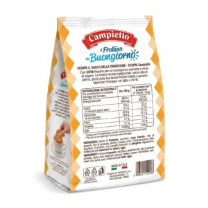Galletas de mantequilla ligeras y delicadas, elaboradas con huevo. Ingredientes: harina de trigo, azúcar, óleo de girasol, huevo 5%, jarabe de glucosa, gasificantes: carbonato ácido de sodio, carbonato ácido de amonio; leche entera en polvo, sal, proteínas de leche, aroma vainillina, puede contener soja, frutos de cáscara, granos de sésamo, mostaza País de origen: Italia