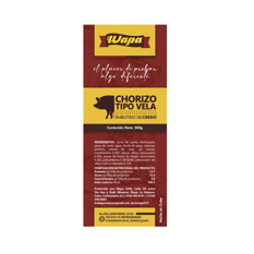 Producto crudo-curado con ingredientes naturales de alta calidad, madurado en secaderos naturales. Ingredientes: carne de cerdo ibérico, sal, pimentón, ajo, dextrosa, lactosa, dextrina, proteína de leche, leche en polvo, azúcar, corrector de acidez (E-331iii), emulgentes (E-452, E-450, E451), conservador (E-250), y antioxidante (E-301). Se utilizan 135 g de carne para elaborar 100g de producto final….