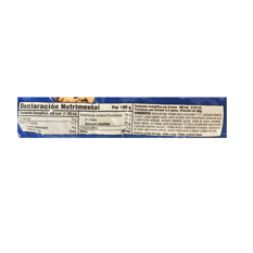 Ingredientes: harina de trigo, azúcar molido, grasa vegetal, agua, azúcar invertido, almidón de maíz, suero de leche, bicarbonato de amonio, lecitina de soja, bicarbonato de sodio, sal, aroma de fresa, ácido láctico, ácido cítrico, colorante rojo y emulsionantes. Contiene gluten. Alérgenos: contiene productos de trigo, soya y la leche.