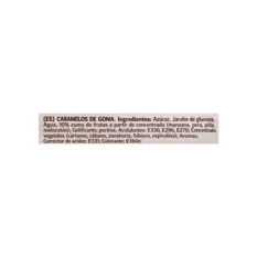 Ingredientes: azúcar, jarabe de glucosa, agua, 10 % zumo de frutas a partir de concentrado (manzana, pera, piña, melocotón); gelificante: pectina; acidulantes: E330, E296, E270; concentrados vegetales (cártamo, rábano, zanahoria, hibisco, espirulina); aromas; corrector de acidez: E331; colorante: E160c. País de origen: España